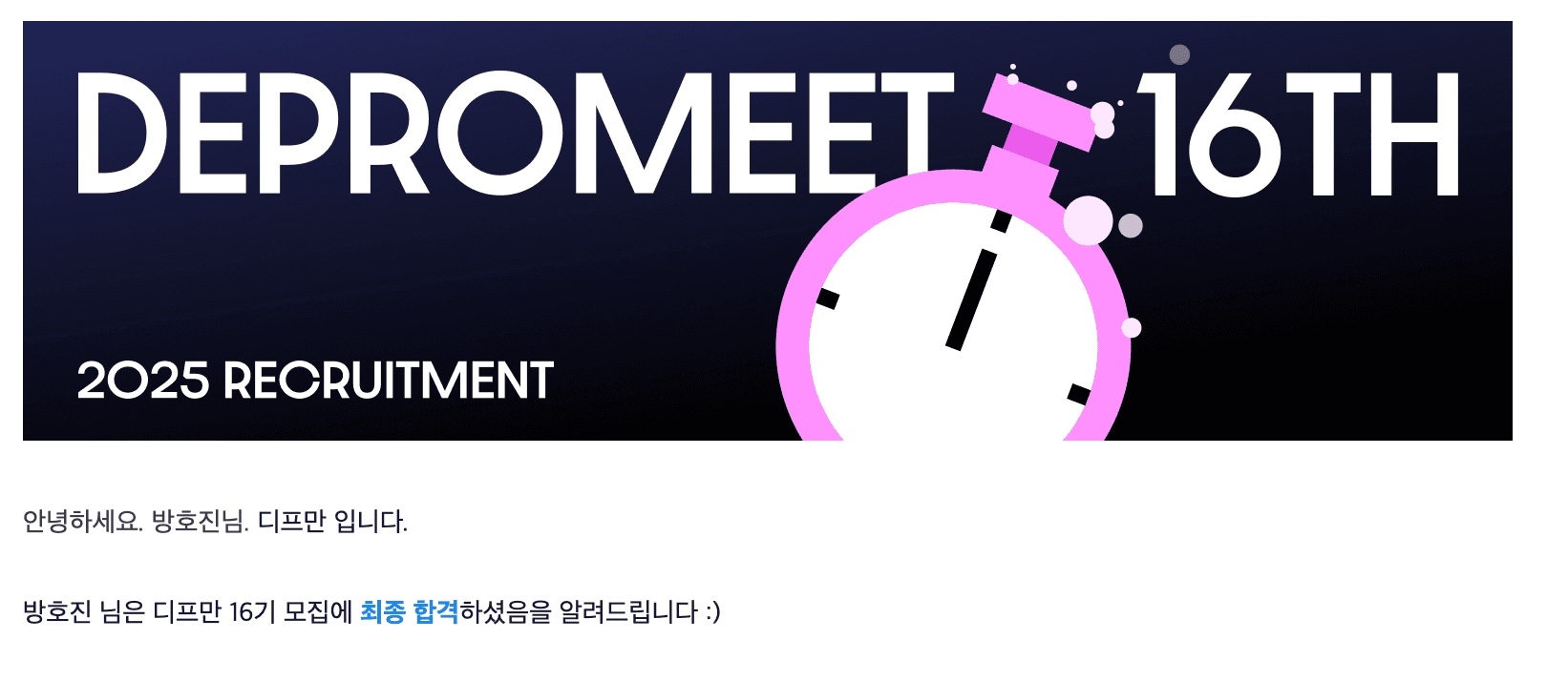 최근 디프만 16기에 지원했고, 감사하게도 최종 합격하여 소중한 디프만 활동에 참여하게 되었습니다. 많은 개발자 취준생분들과 현직자들에게 관심이 많은 커뮤니티이기 때문에 디프만 17기에 준비하시는 분들께 조금이라도 도움이 되었으면 하는 마음으로, 이번 서류 및 면접 과정을 포함한 합격 후기를 작성해보았습니다.