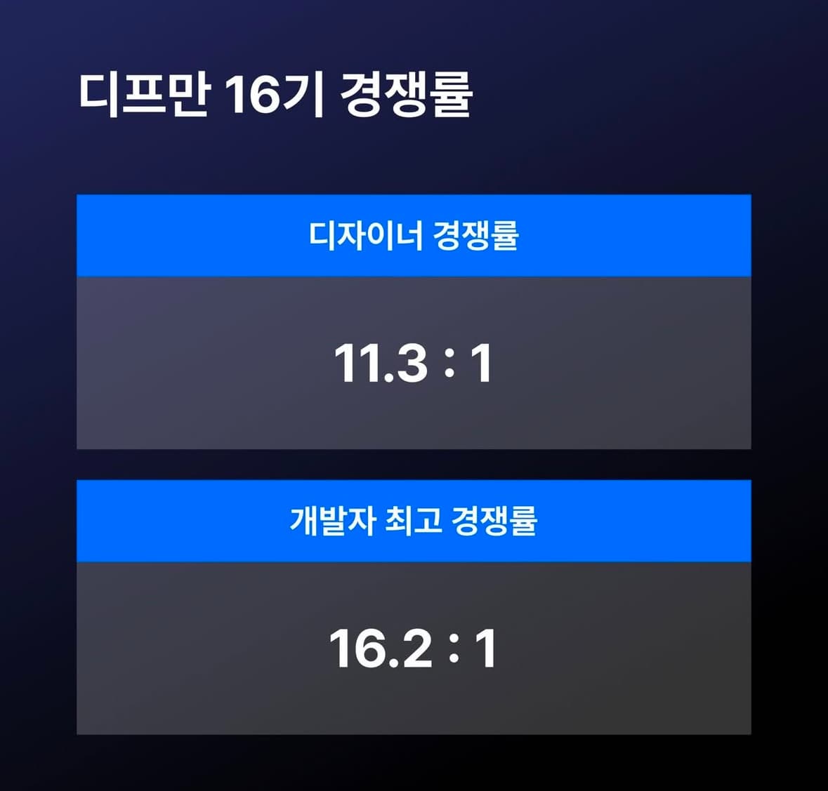 이번 16기 개발자 경쟁률은 약 16대 1로, 14기와 15기보다 더 높아졌다고 합니다. 점점 높아지는 경쟁률을 보며, 앞으로 개발 시장에서 이러한 특별한 경험이 더욱 소중해질 것이라는 생각이 들었습니다. 아마 17기에는 경쟁률이 더 치열해질 것으로 예상됩니다. 그만큼 소중한 기회이기에, 지금의 열정을 잃지 않고 무사히 수료할 때까지 꾸준히 노력하며 열정적인 모습을 유지하고 싶습니다.
