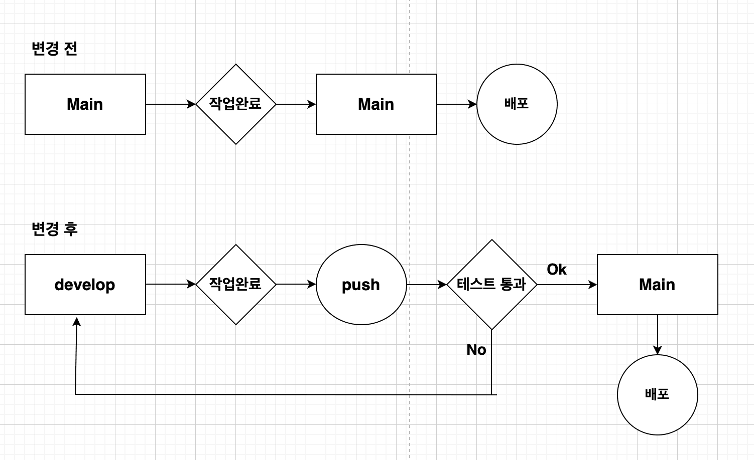 이제 develop 브랜치를 생성하고, 기능을 개발이 완료되면 main 브랜치로 Pull Request를 요청한다.