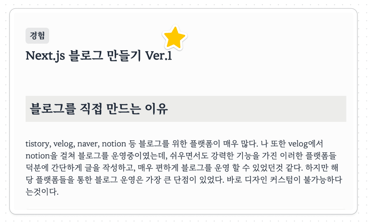 노션 페이지처럼 글 상세페이지 상단에 PostHeader를 추가해서, 글 제목, 글 태그를 보여준다면 글을 읽는 독자에게 더 상세한 글 정보를 제공해줄 수 있을것이다.