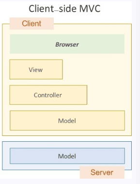 위 사진을 보면 Client 측에서 Model, View, Controller 등 클라이언트 측에서 너무 많은 책임을 지게 되는 상황을 초래한다. 전통적인 모델-뷰-컨트롤러(MVC) 아키텍처에서는 데이터 모델, 사용자 인터페이스, 애플리케이션 로직 간의 상호작용이 복잡해지면서 관리가 어려워졌다.