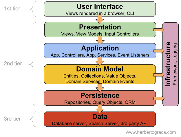 네 번째 레이어는 Infrastructure 레이어다. DB와 프레임워크 같은 외부와 통신 작업을 해주는 작업을 해준다.