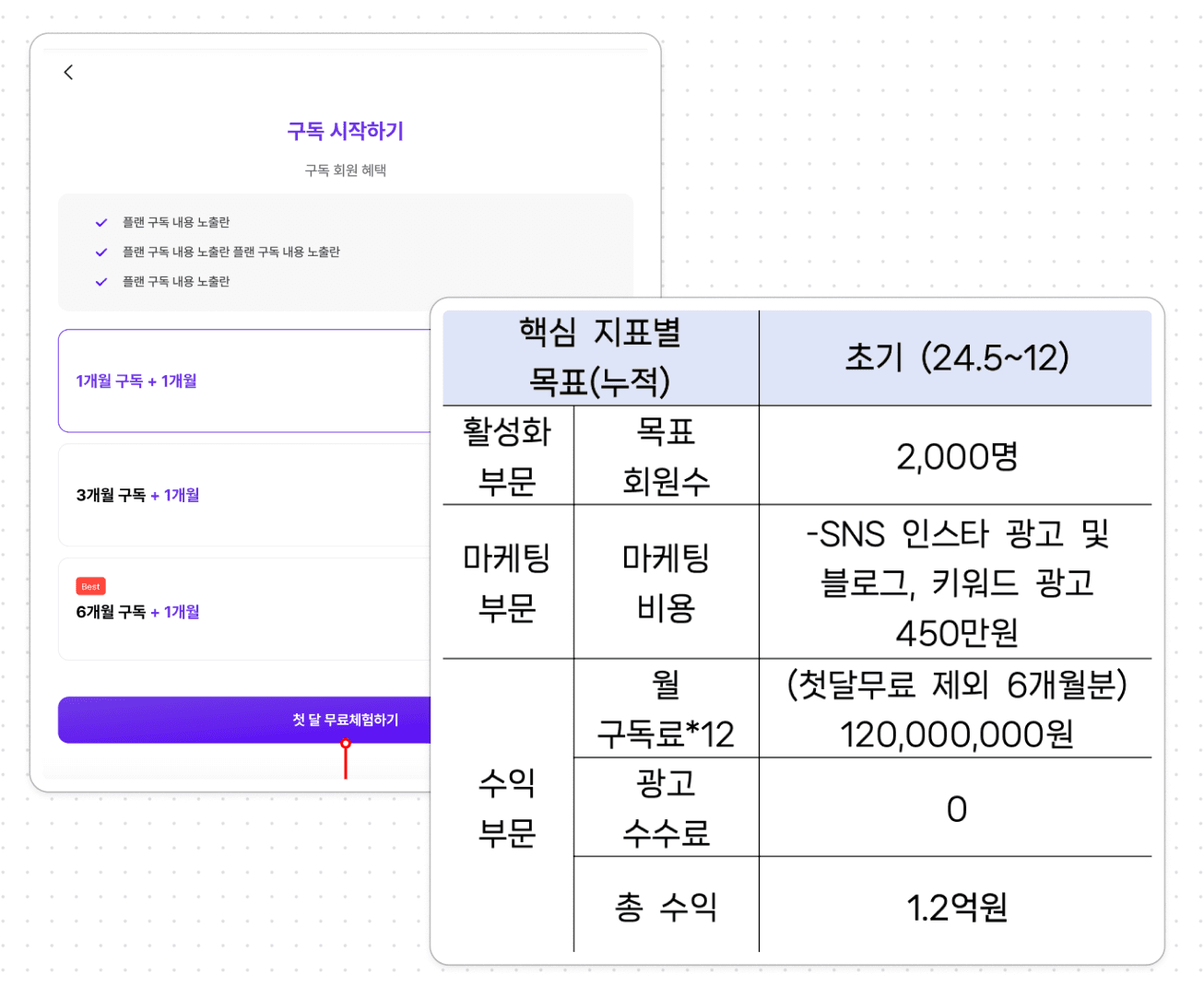 };먼저 제공받은 화면 디자인을 보면 첫 달 무료 이벤트가 전체 사용자에게 적용된다. '결제하기' 버튼을 클릭하면 사용자는 결제 로직 주문서 진입 페이지로 이동하게 되는데, 이 이동 과정에서 router는 사용자의 userid, totalAmount, 및 orderTitle을 params로 함께 전송한다. 해당 정보들은 나중에 결제창 렌더링을 위한 정보이다. 아쉽게도 무료 이벤트임에도 불구하고, 토스 페이먼츠 시스템은 최소한의 1원 이상의 금액을 필요로 하기 때문에 어쩔 수 없이, 0원의 가격 대신 totalAmount에 1원을 입력 해야 했다.