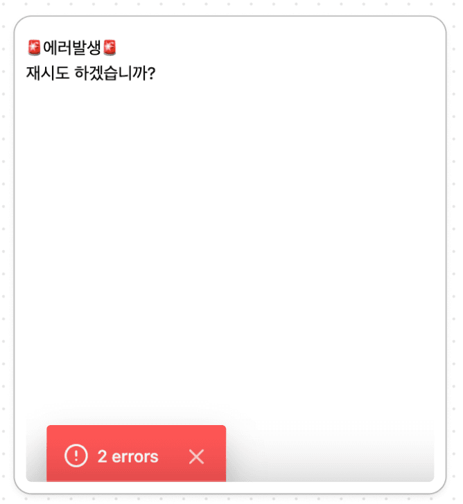 ErrorBoundary로 앱을 감싸주고 확인해보면, 이전과 달리 빈 화면이 아닌, "에러 발생"이라는 문구가 표시되면서 사용자에게 에러가 발생했음을 확실히 인지 시킬 수 있다.