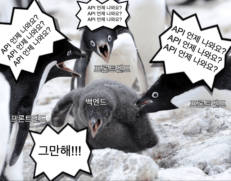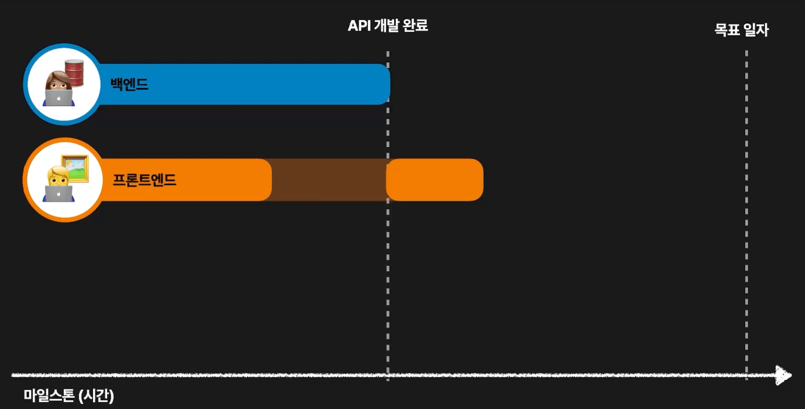 - 이 과정에서 프론트엔드 개발자는 백엔드의 설계가 완료될 때까지 기다려야 한다.