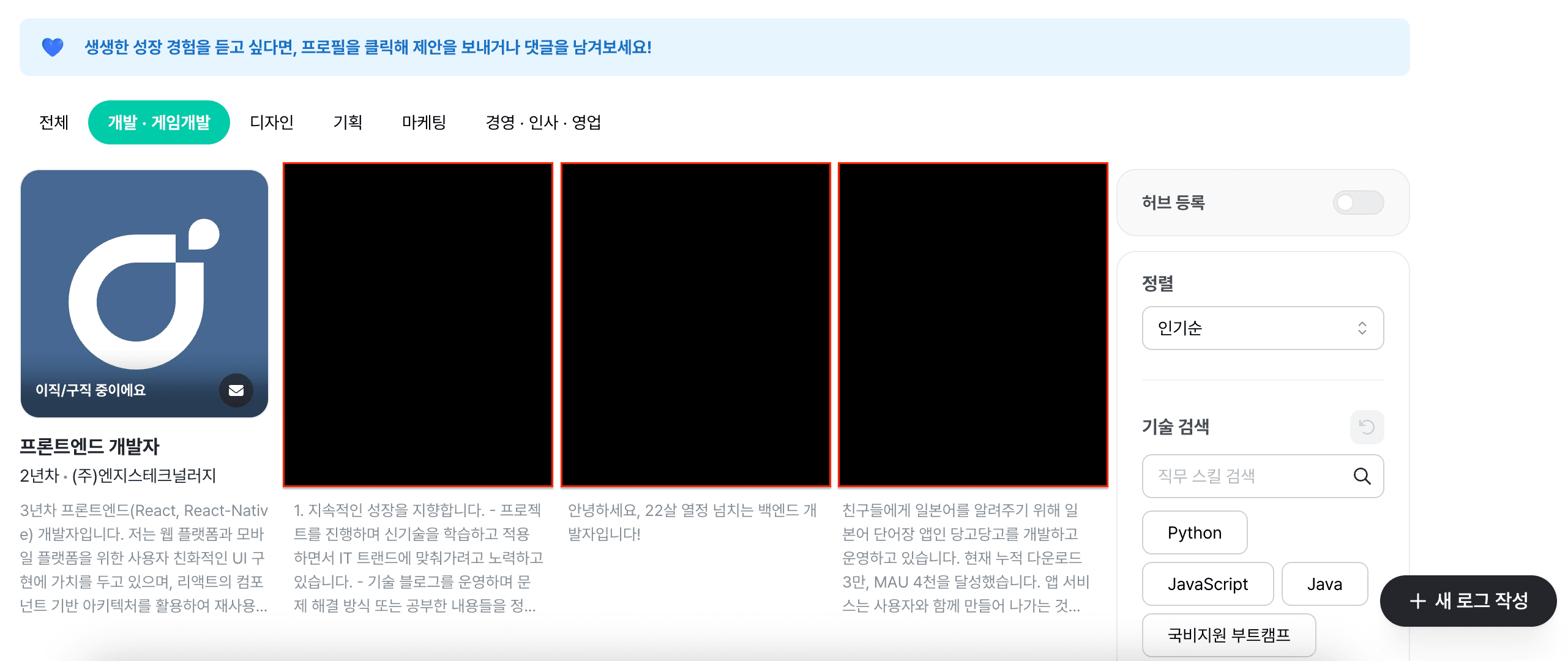 또한 이처럼 지원자 수가 급증함에 따라 현 시장에서는 신입 프론트엔드 개발자의 스펙이 상향 평준화된 것 같습니다. 대부분 신입 지원자들의 이력서를 보면 React, Next.js, Redux, Recoil, Zustand, React-Query, MSW, Storybook, Styled-Components, Tailwind, Emotion 같은 기술 스택은 물론 SSR, ISR 경험, SEO 최적화, 성능 최적화, 실제 서비스 운영 경험, 무한 스크롤 구현 경험은 거의 기본으로 갖추고 있는 경우가 많습니다. 해커톤, 동아리, 스터디, 오픈소스 활동도 흔한 대외활동으로 자리 잡았다고 생각합니다.